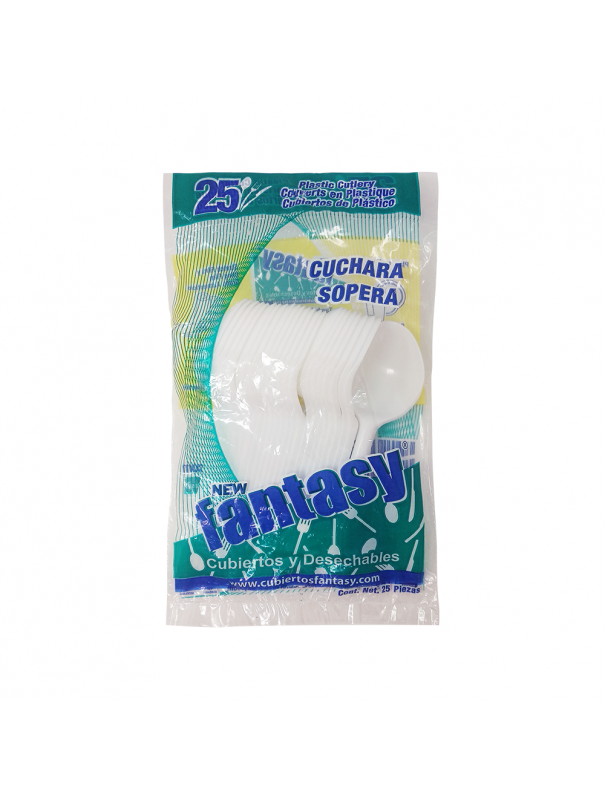 Cubiertos de plástico tamaño grande, preferible para caldos o sopas, muy resistentes.